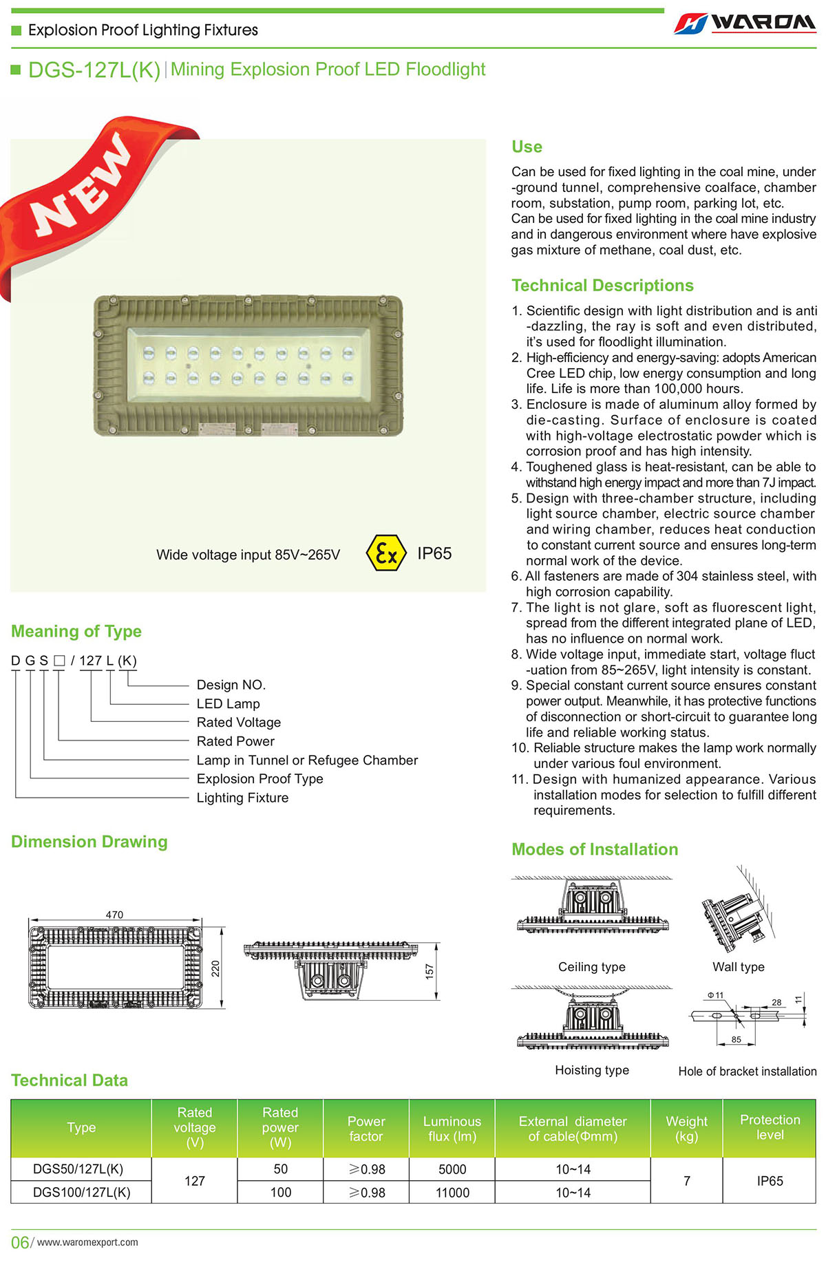 > Explosion Proof Lighting Fixtures > DGS-127L(K) Mining Explosion Proof LED Floodlight