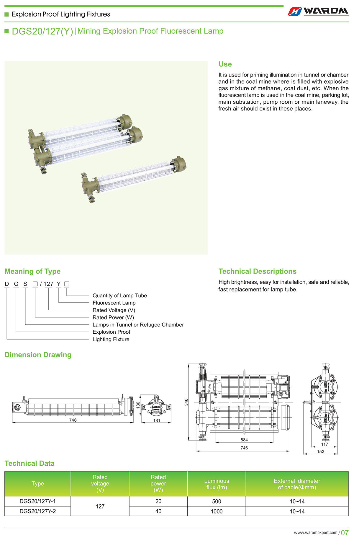 DGS20/127(Y) Mining Explosion Proof Fluorescent Lamp