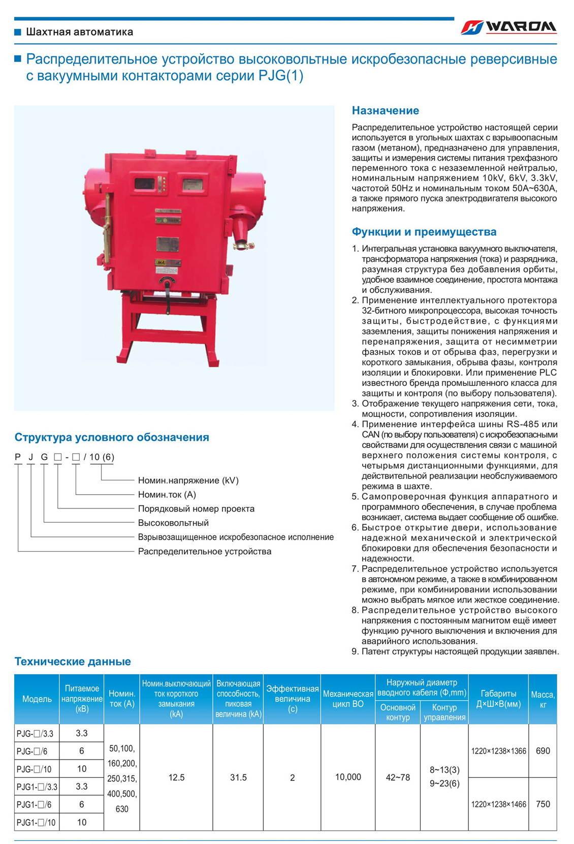 Распределительное устройство высоковольтные искробезопасные реверсивные с вакуумными контакторами серии PJG(1)