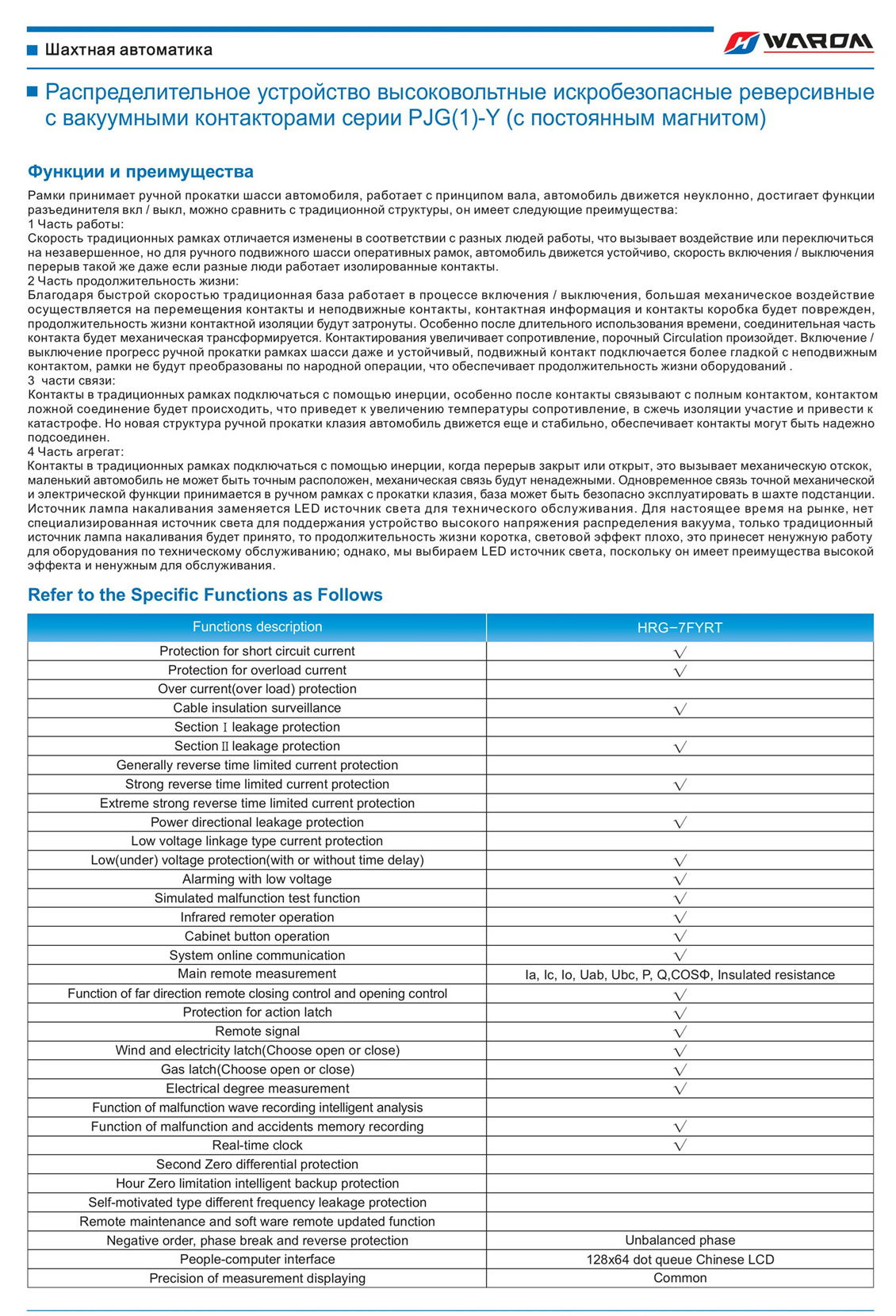 Главная > Продукты > Шахтная автоматика > Распределительное устройство высоковольтные искробезопасные реверсивные с вакуумными контакторами серии PJG(1)-Y (с постоянным магнитом)