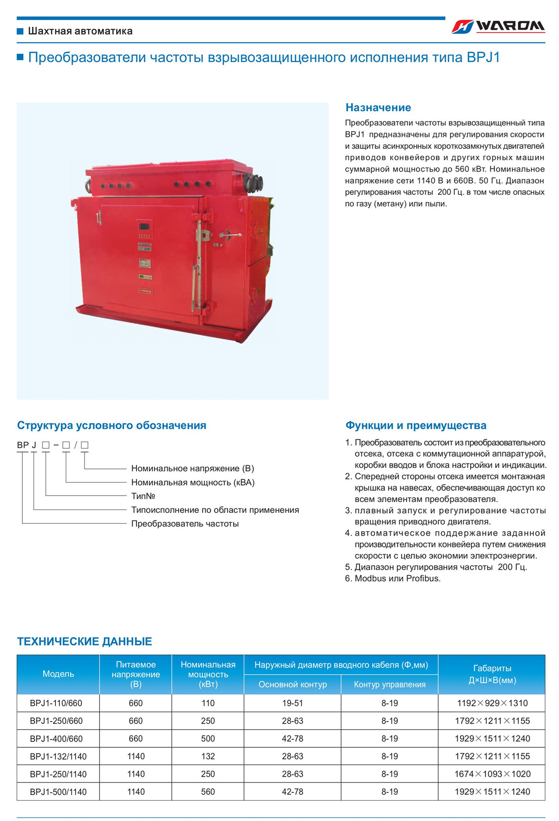 Главная > Продукты > Шахтная автоматика > Преобразователи частоты взрывозащищенного исполнения типа BPJ1